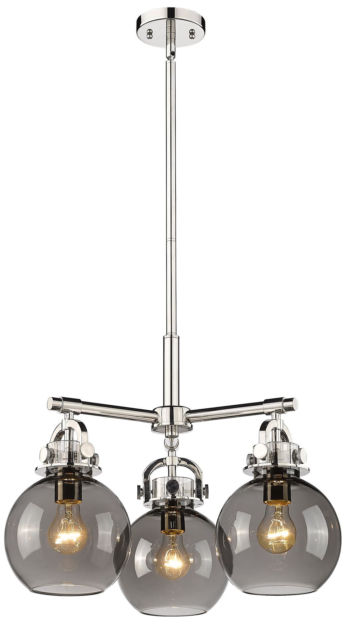 Newton Sphere 20.4"W 3 Light Stemmed Polished Nickel Pendant w/ Smoke