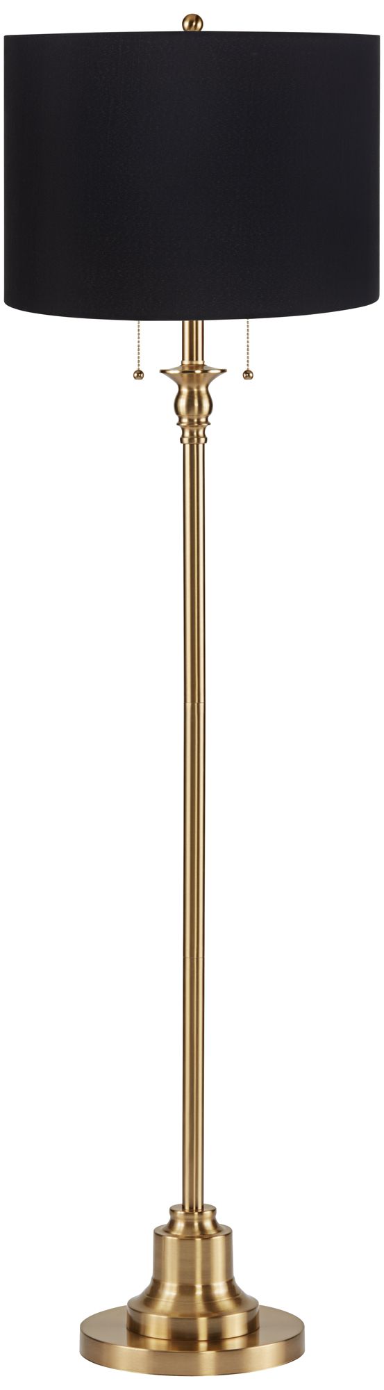 360 Lighting Dyna 58" Antique Brass Black Drum Shade Floor Lamp