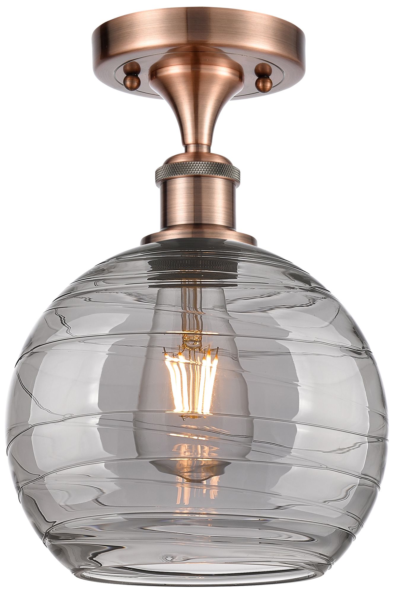 Ballston Athens 8"W Antique Copper Semi-Flush Mount w/ Smoke Swirl Sha
