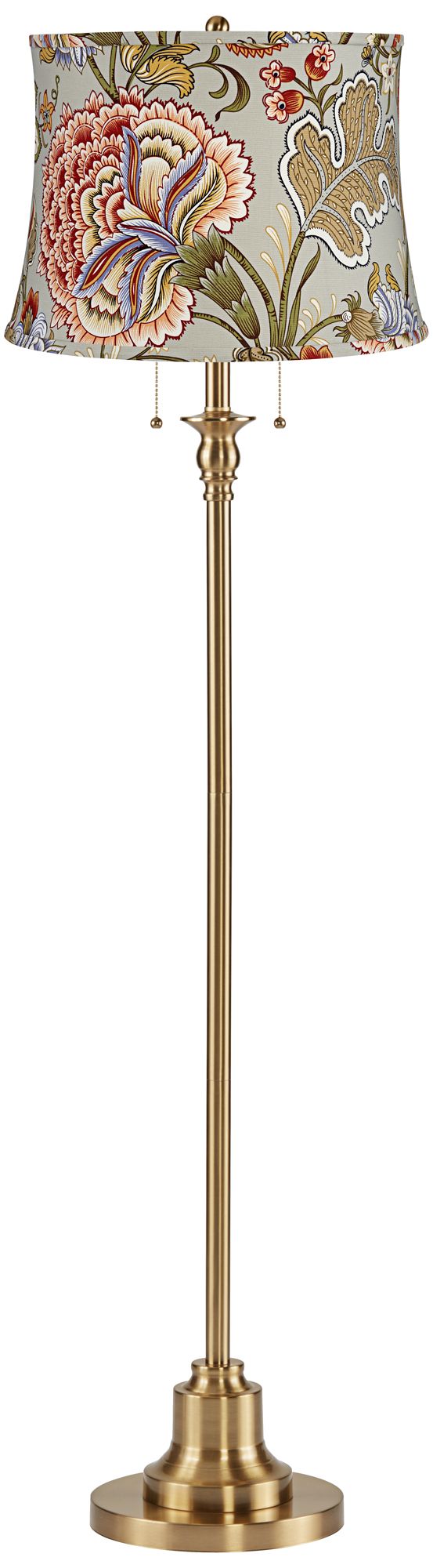 Dyna 58" High Antique Brass and Sage Floral Shade 2-Light Floor Lamp
