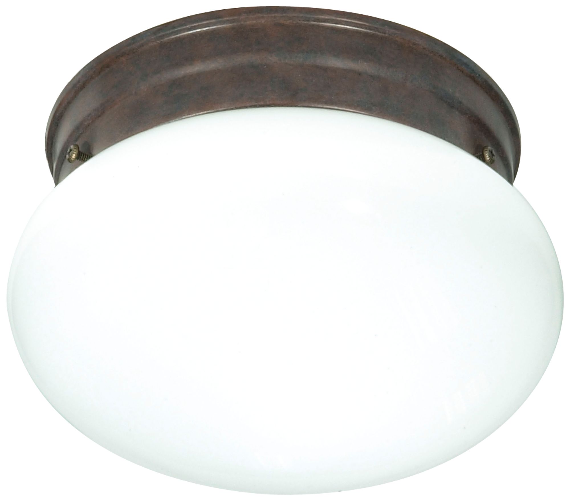1 Light - 8" - Flush Mount - Small White Mushroom - Old Bronze Finish