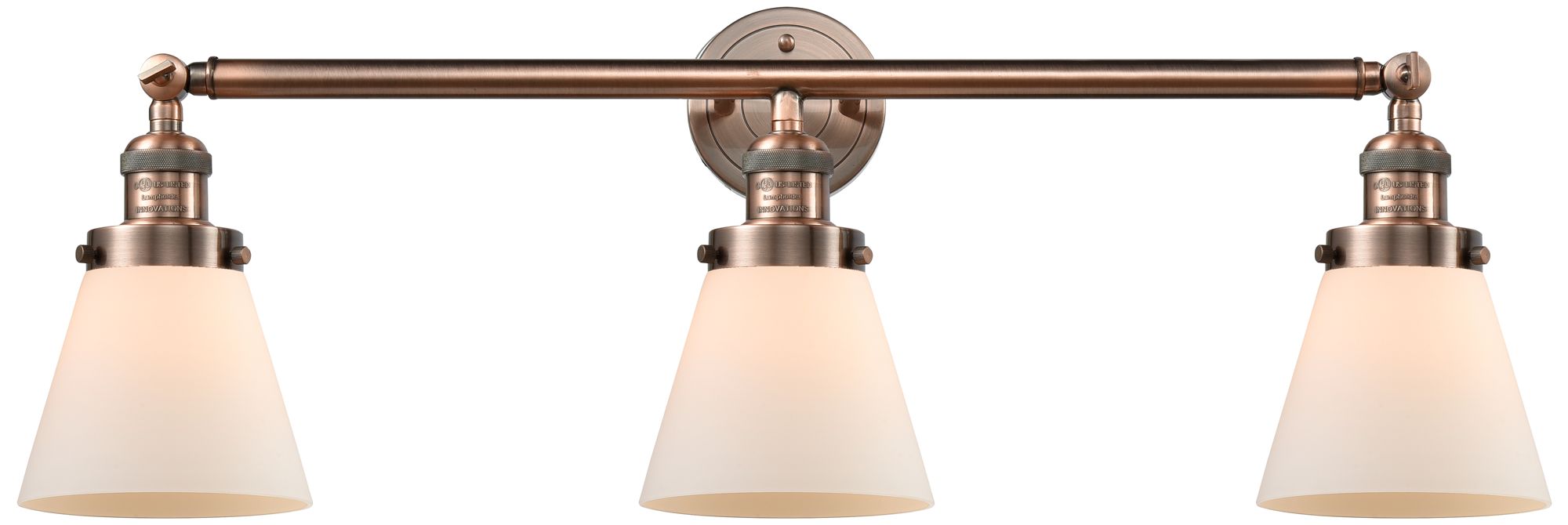 Cone 30" 3-Light Antique Copper Bath Light w/ Matte White Shade