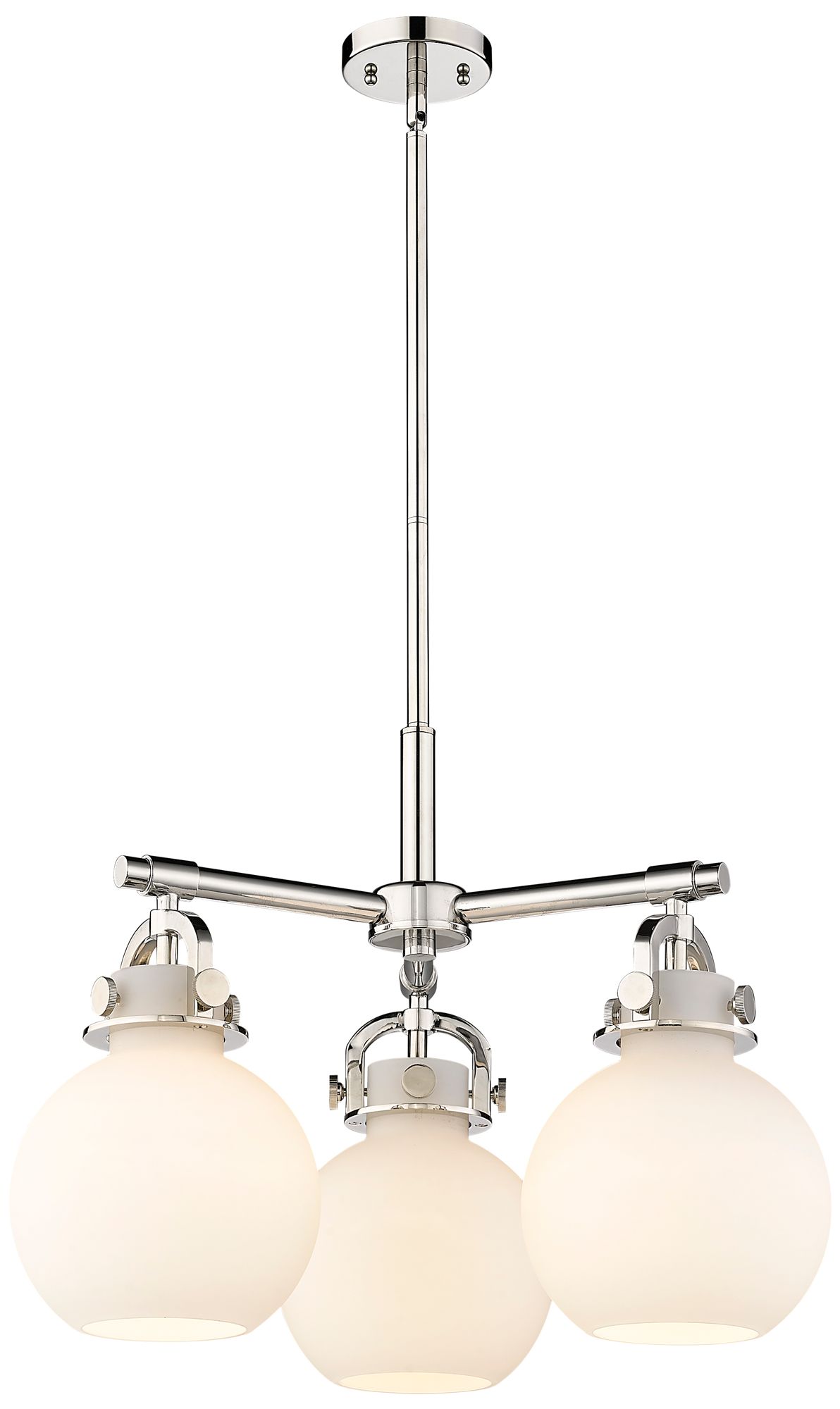 Newton Sphere 20.4"W 3 Light Stemmed Polished Nickel Pendant w/ White