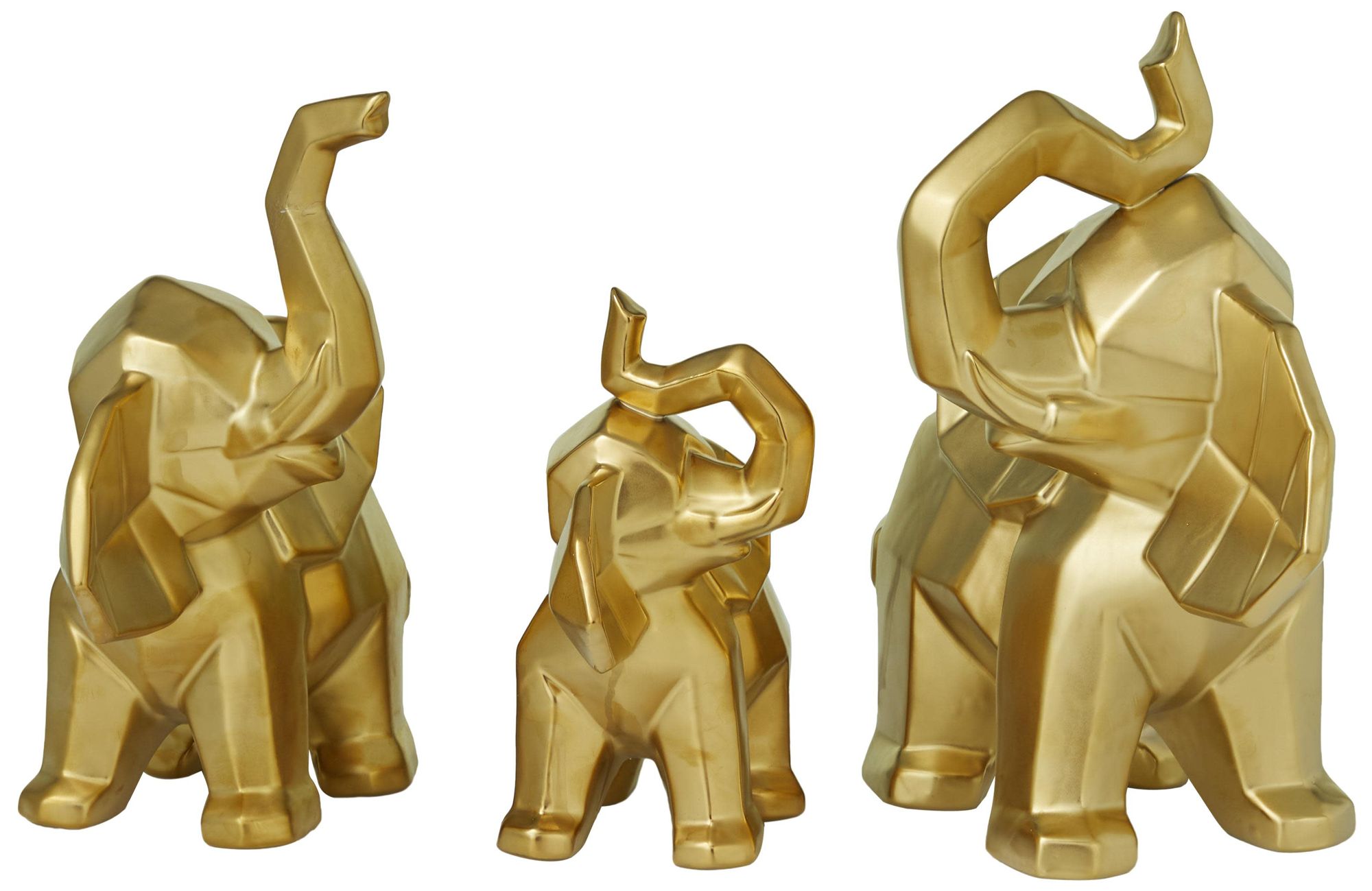 Gold Porcelain Ceramic Glam Sculpture, S/3 12", 11", 8"H