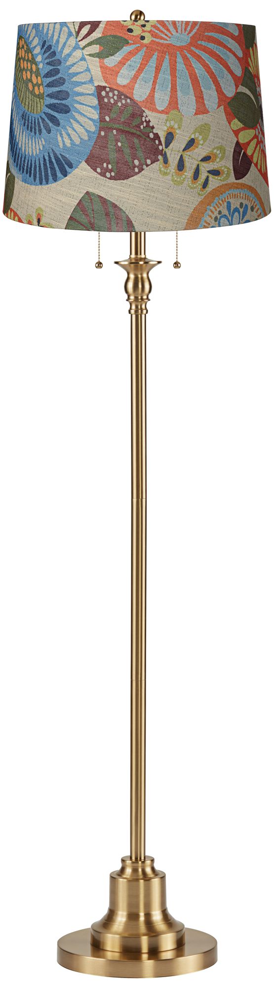 Dyna 58"H Antique Brass and Tropical Flower Shade 2-Light Floor Lamp
