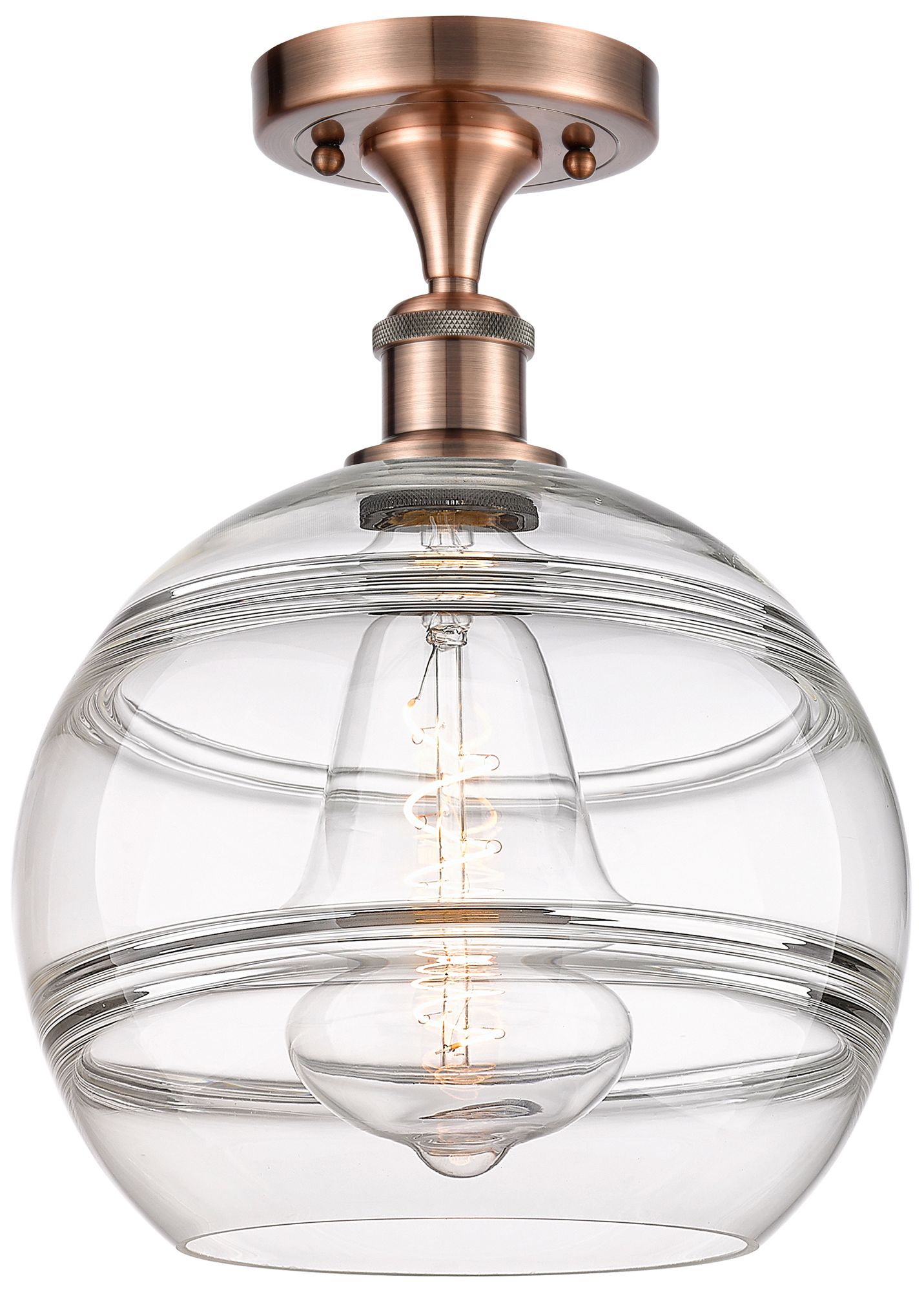 Ballston Rochester 10" Wide Antique Copper Semi-Flush Mount w/ Clear S