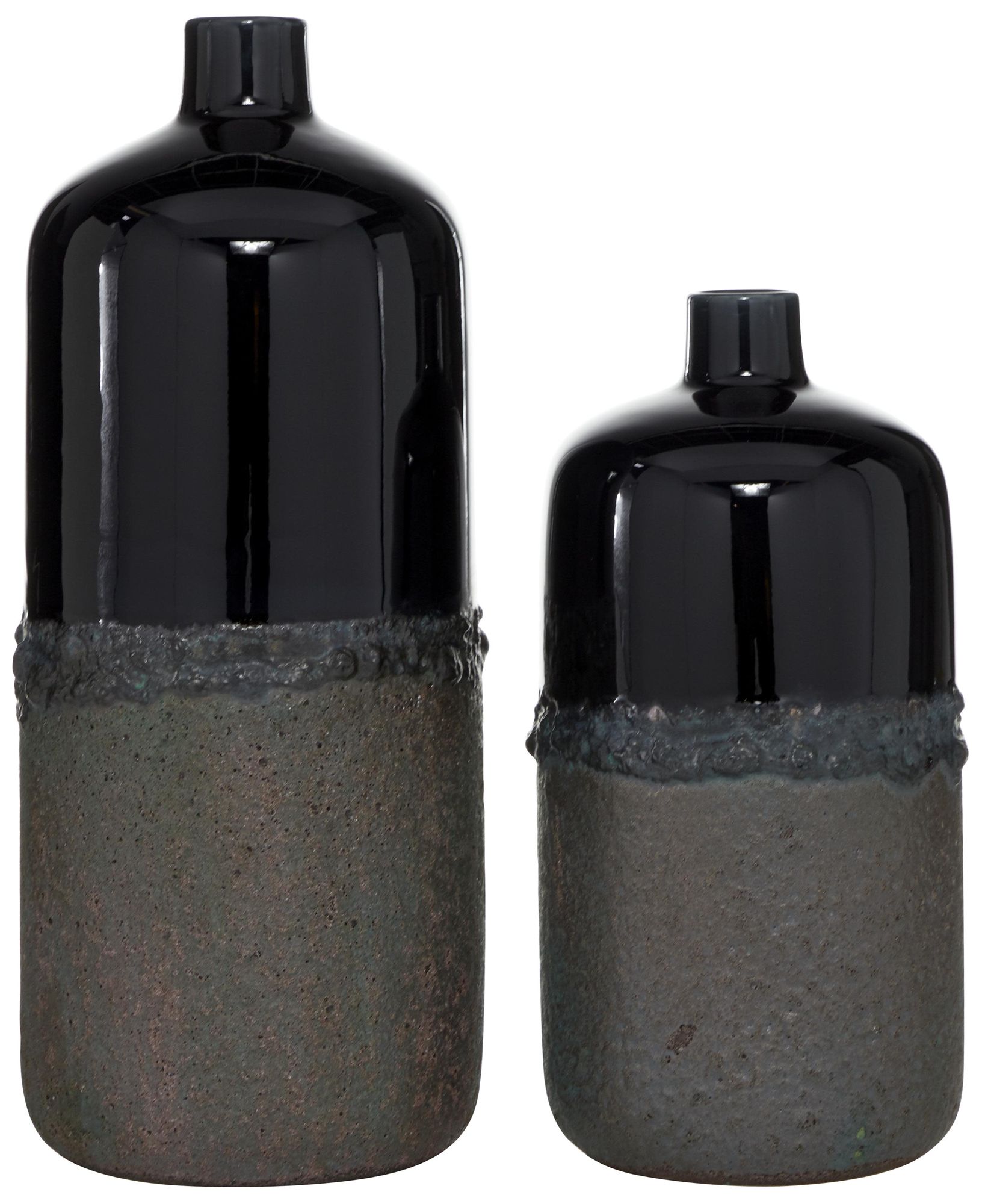 Black Ceramic Rustic Vase, S/2 19", 15"H