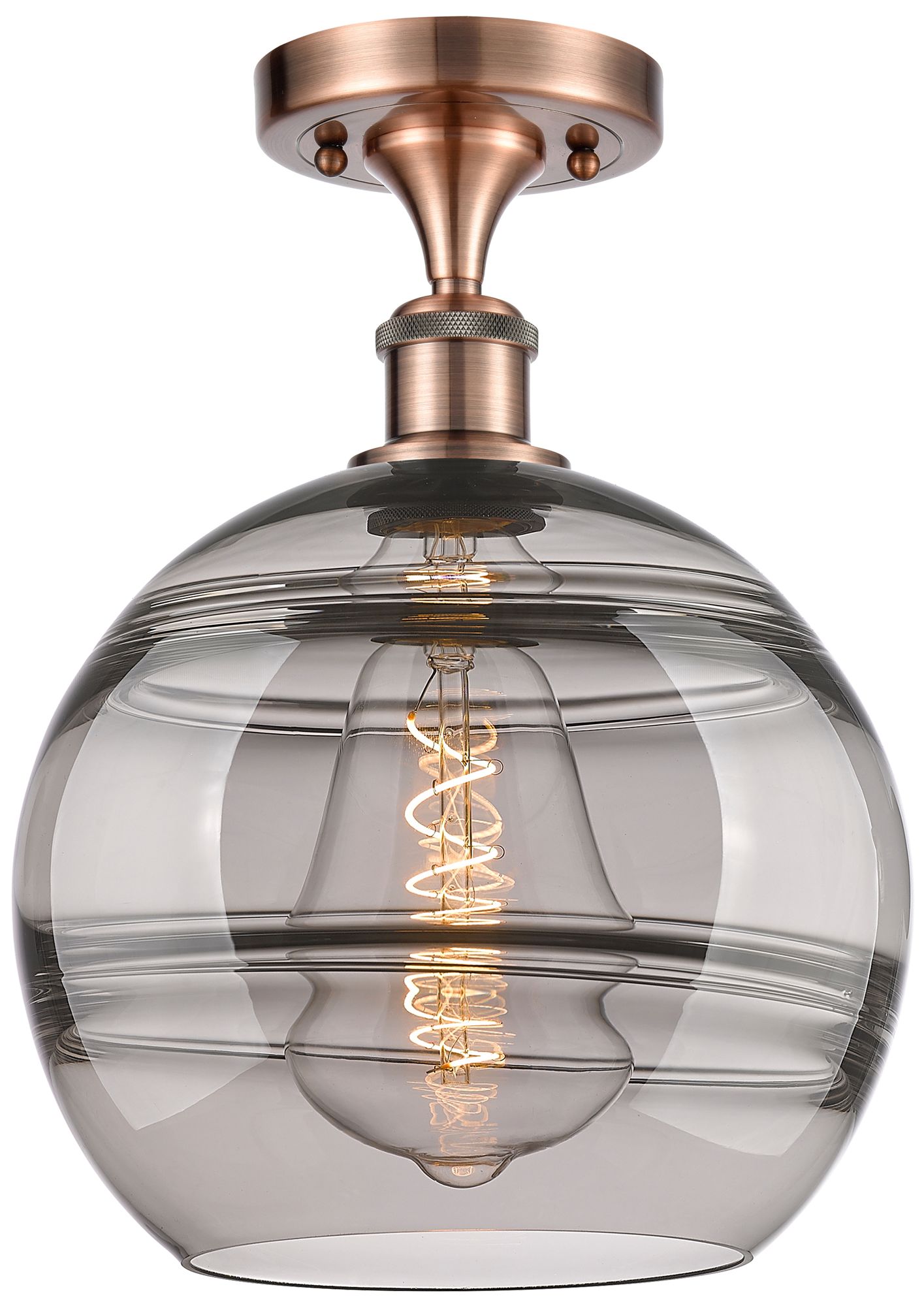 Ballston Rochester 10"W Copper Semi-Flush Mount w/ Light Smoke Shade