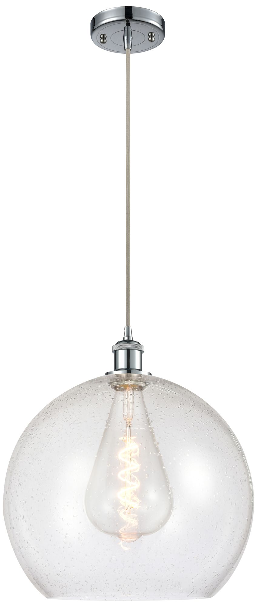 Ballston Athens 14" Polished Chrome Pendant With Seedy Shade