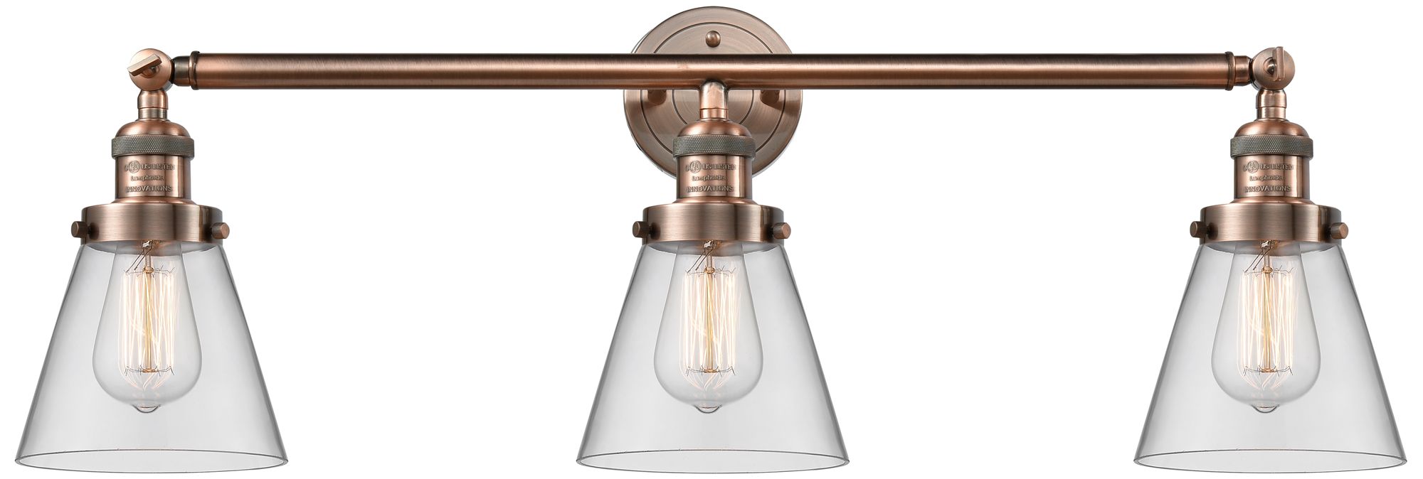 Cone 30" 3-Light Antique Copper Bath Light w/ Clear Shade