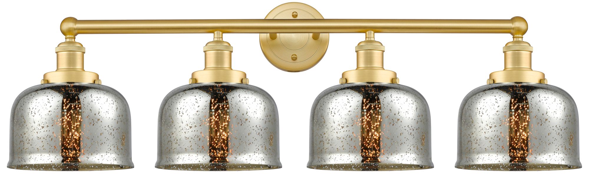 Large Bell 33.5"W 4 Light Satin Gold Bath Vanity Light With Mercury Sh
