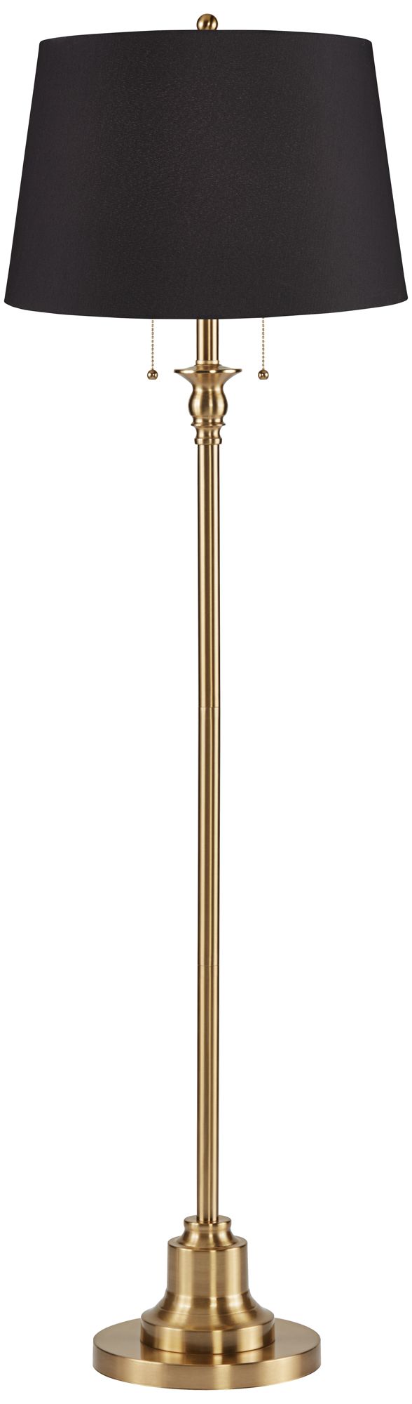 360 Lighting Dyna 58" Antique Brass Black Faux Silk Shade Floor Lamp