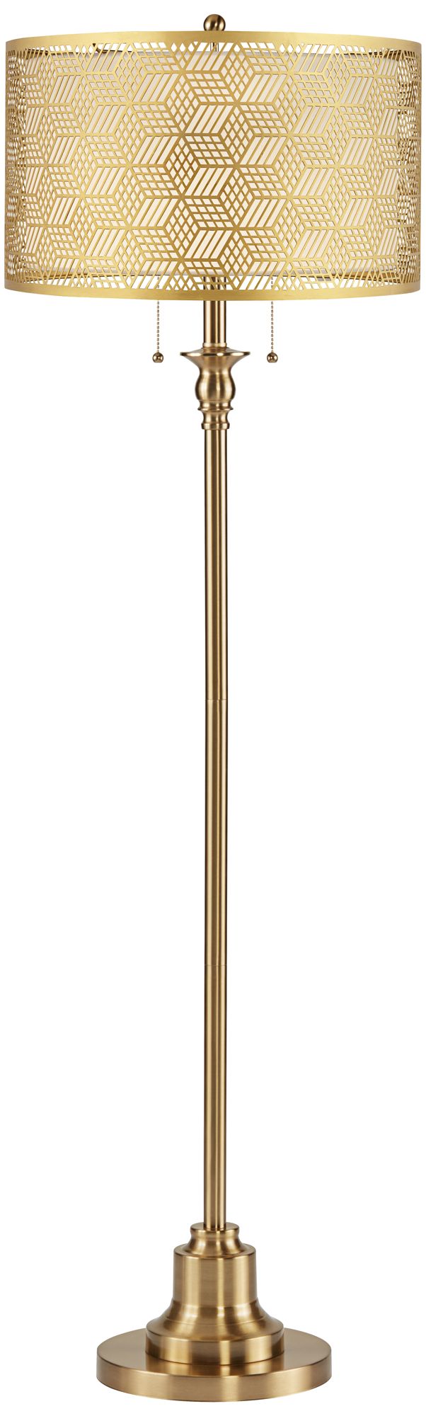 Dyna 58"H Antique Brass and Gold Laser Cut Shade 2-Light Floor Lamp