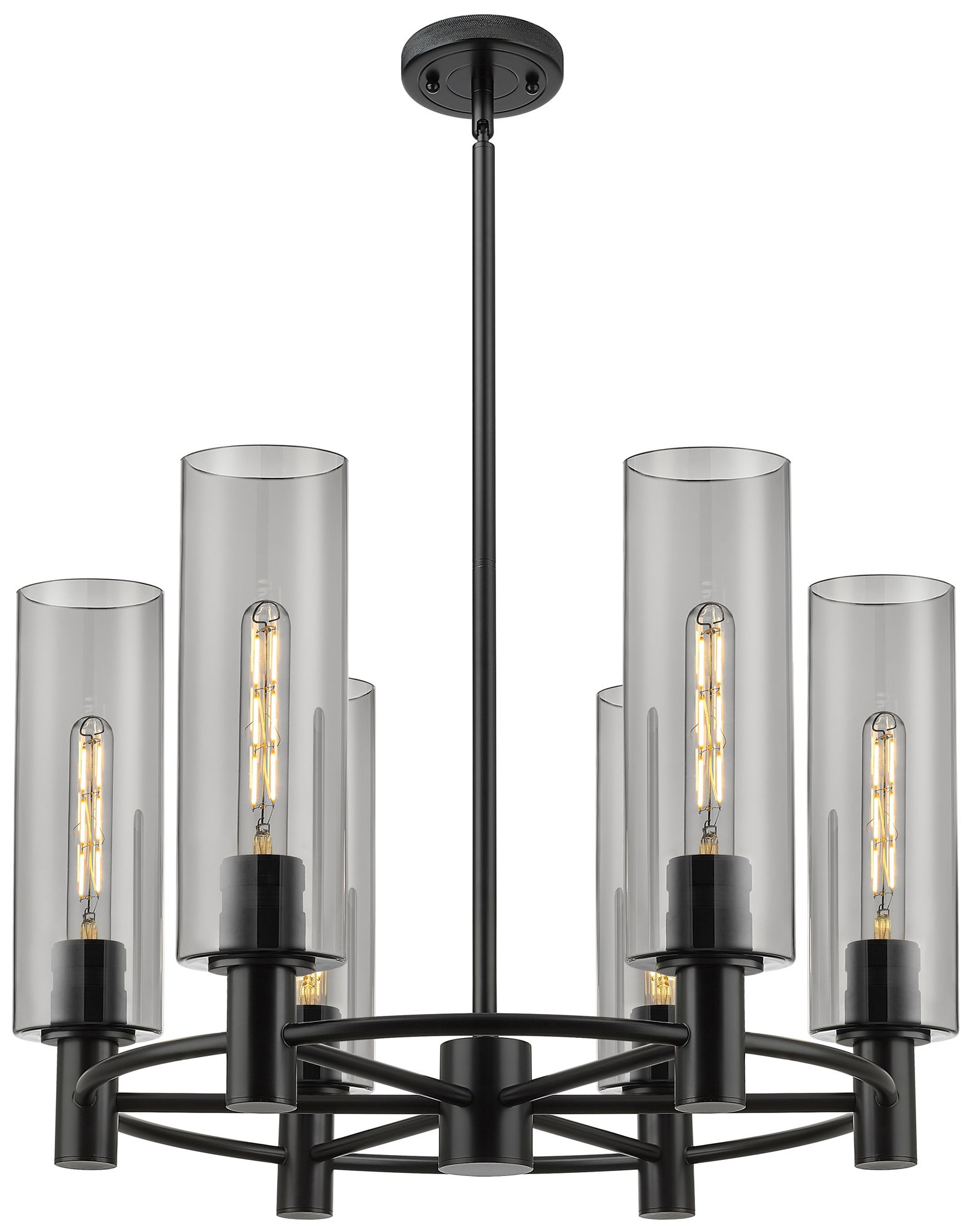 Crown Point 24"W 6 Light Black Stemmed Chandelier w/ Smoke Shade