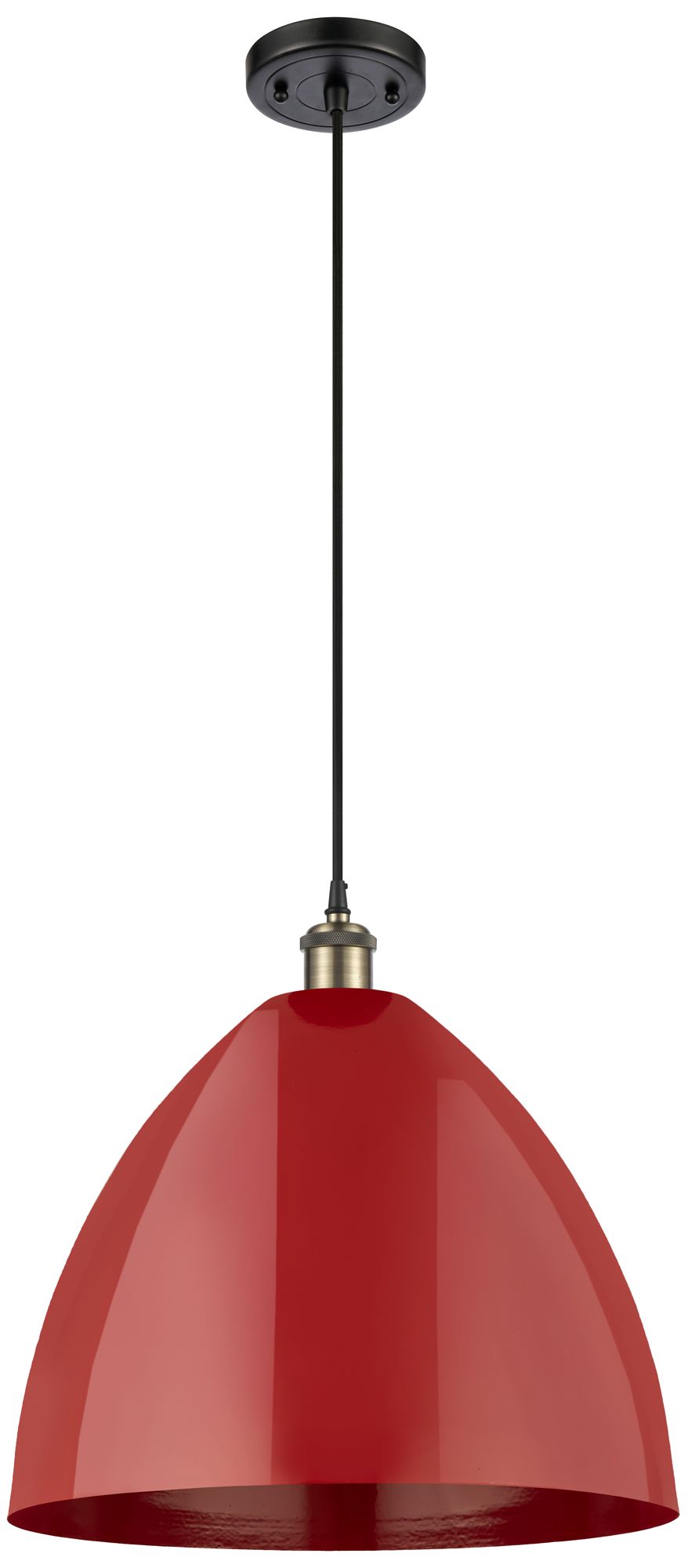 Ballston Plymouth Dome 16"W Black Brass Corded Mini Pendant w/ Red Sha