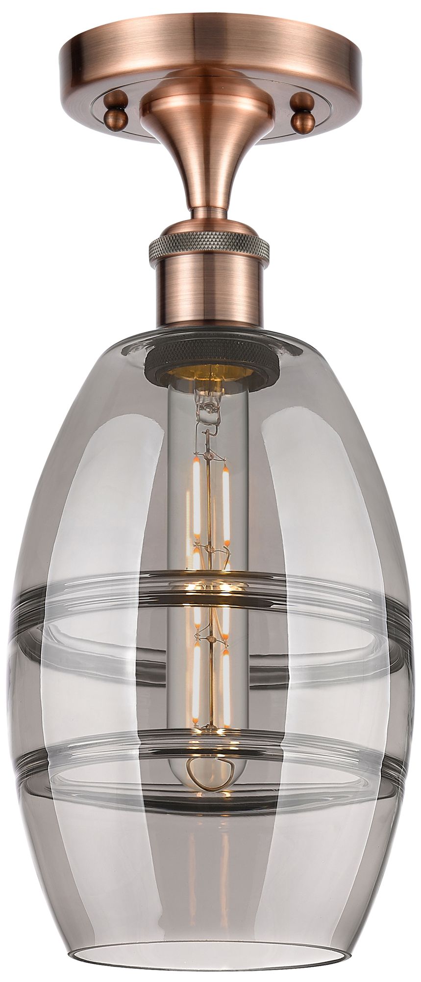 Ballston Vaz 5.88"W Antique Copper Semi-Flush Mount w/ Light Smoke Sha