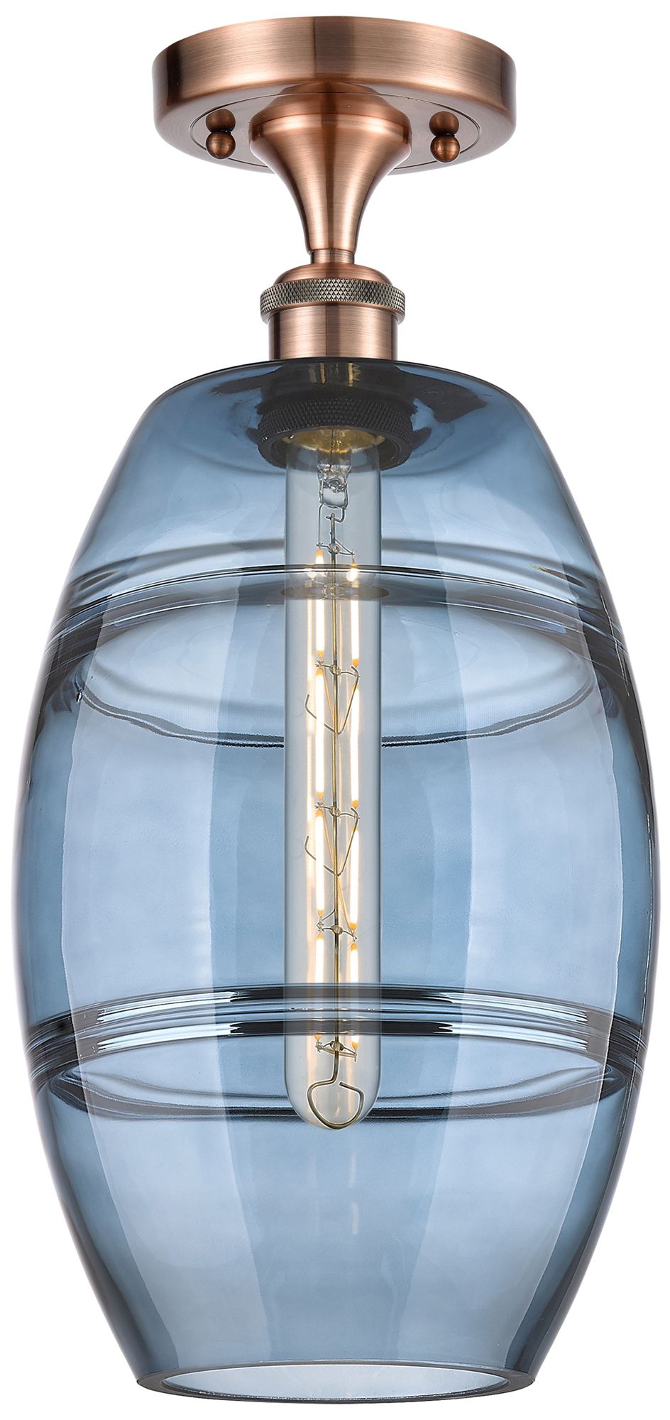 Ballston Vaz 8" Wide Antique Copper Semi-Flush Mount w/ Princess Blue