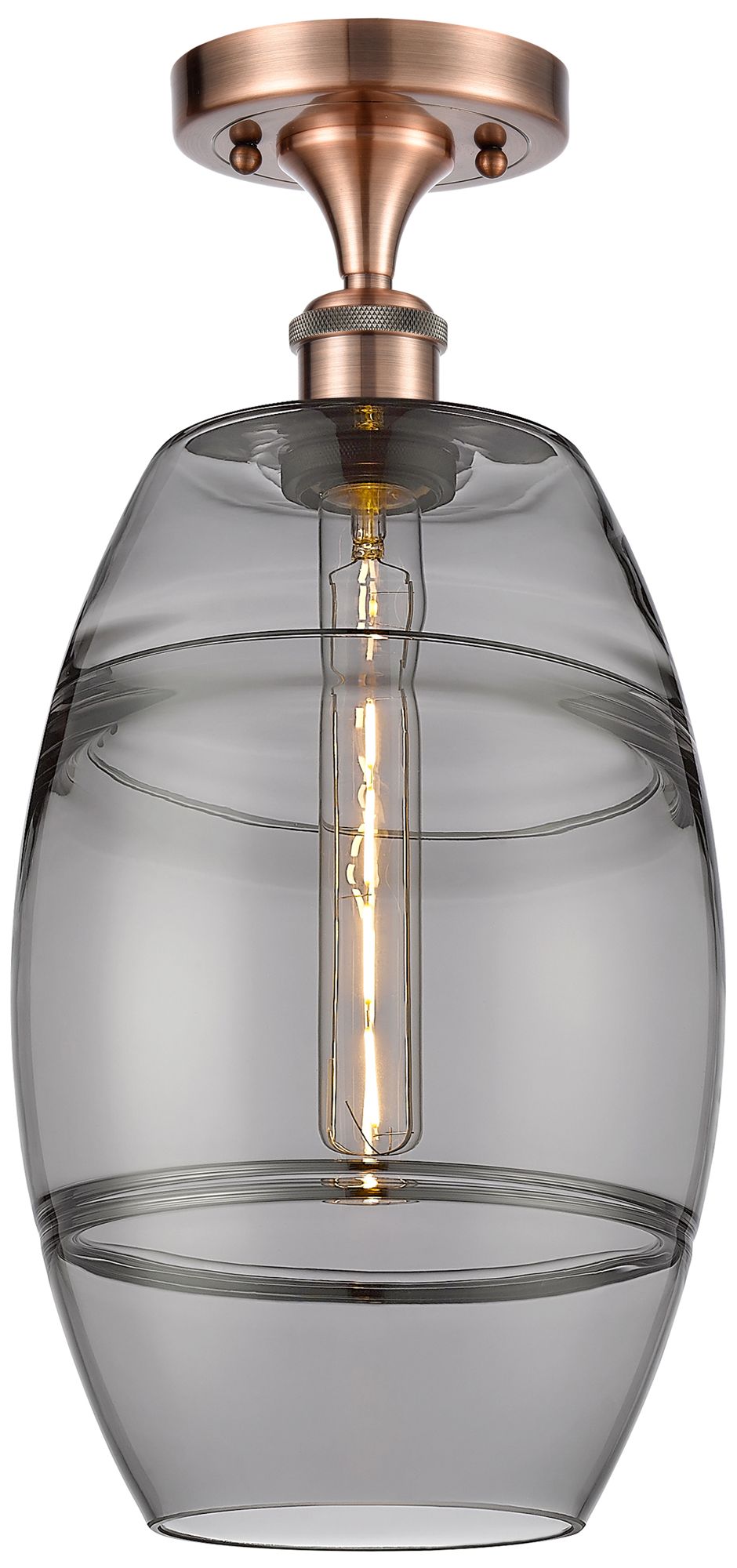 Ballston Vaz 8" Wide Antique Copper Semi-Flush Mount With Light Smoke