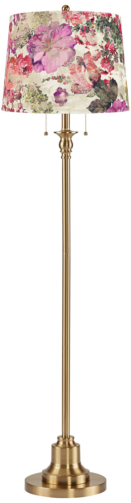 Dyna 58"H Antique Brass and Floral Velvet Shade 2-Light Floor Lamp