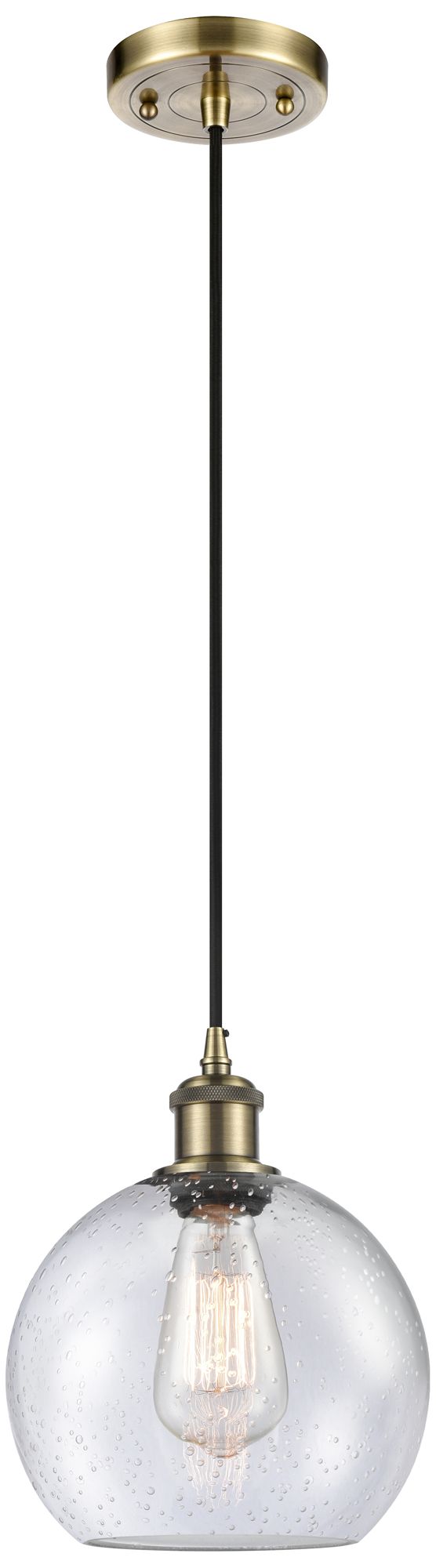 Ballston Athens 8"W Cord Hung Antique Brass Mini Pendant w/ Seedy Shad