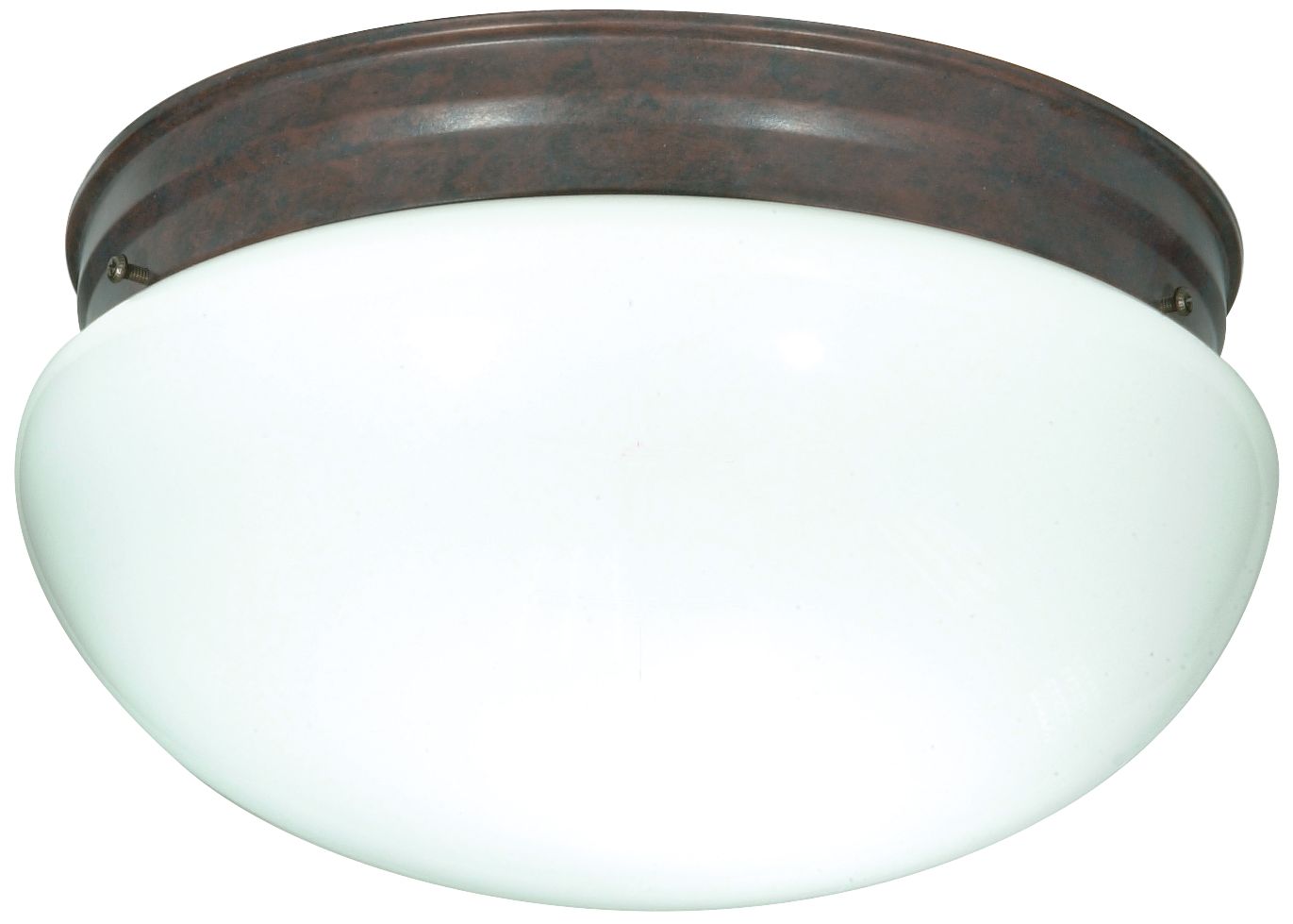 2 Light - 12" - Flush Mount - Large White Mushroom - Old Bronze Finish
