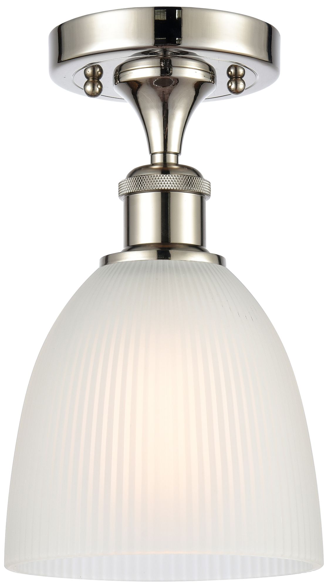 Castile 6" Wide Polished Nickel Semi Flush Mount w/ White Shade