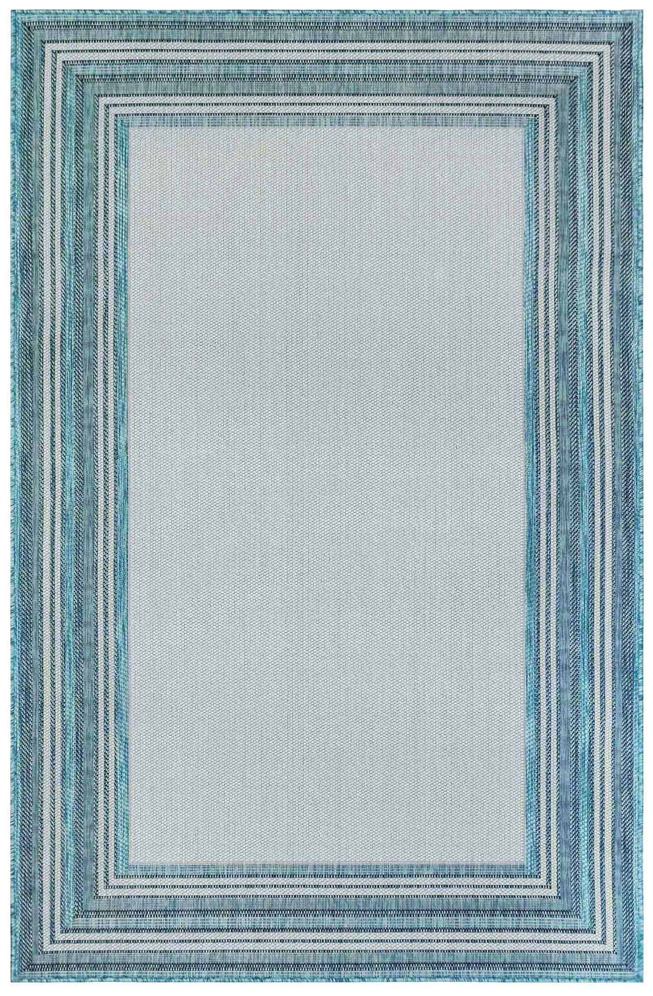 Liora Manne Carmel Multi Border Indoor/Outdoor Rug Aqua 4'10" x 7&