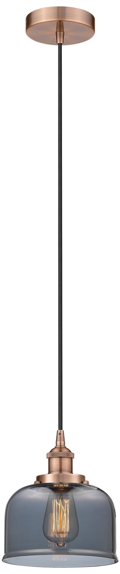 Bell 8" Antique Copper Mini Pendant w/ Plated Smoke Shade
