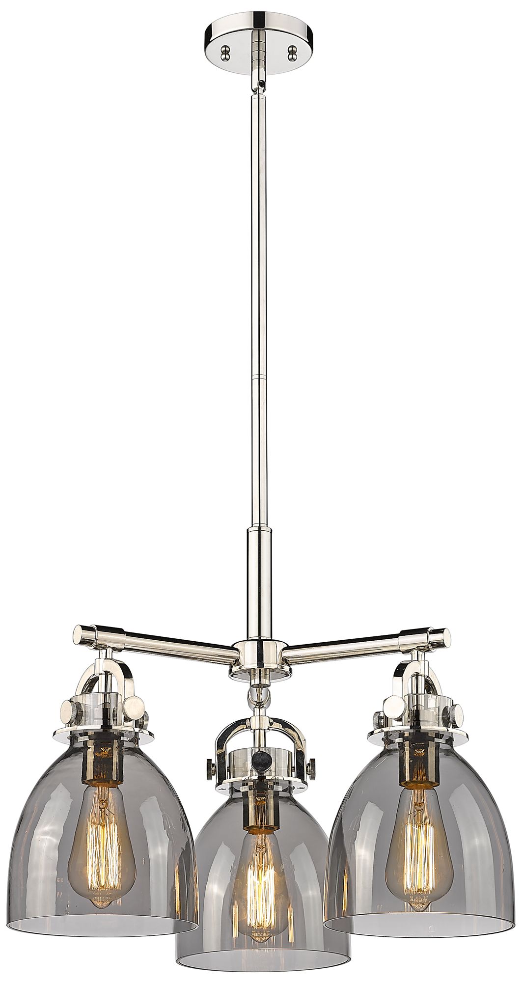 Newton Bell 20.4"W 3 Light Stem Hung Polished Nickel Pendant w/ Smoke