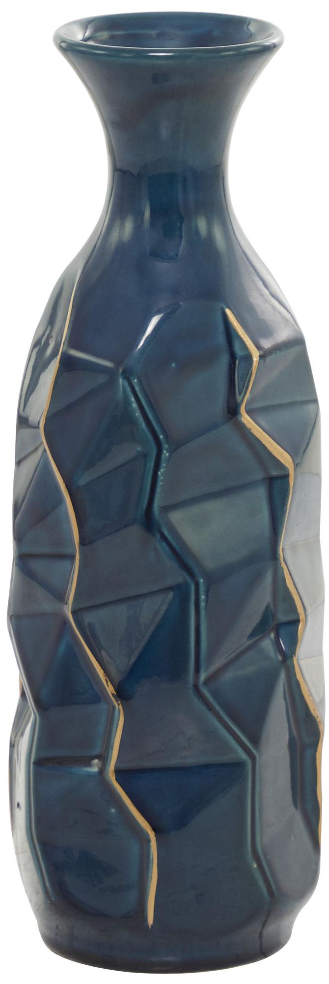 Teal Ceramic Modern Vase, 5" x 5" x 15"