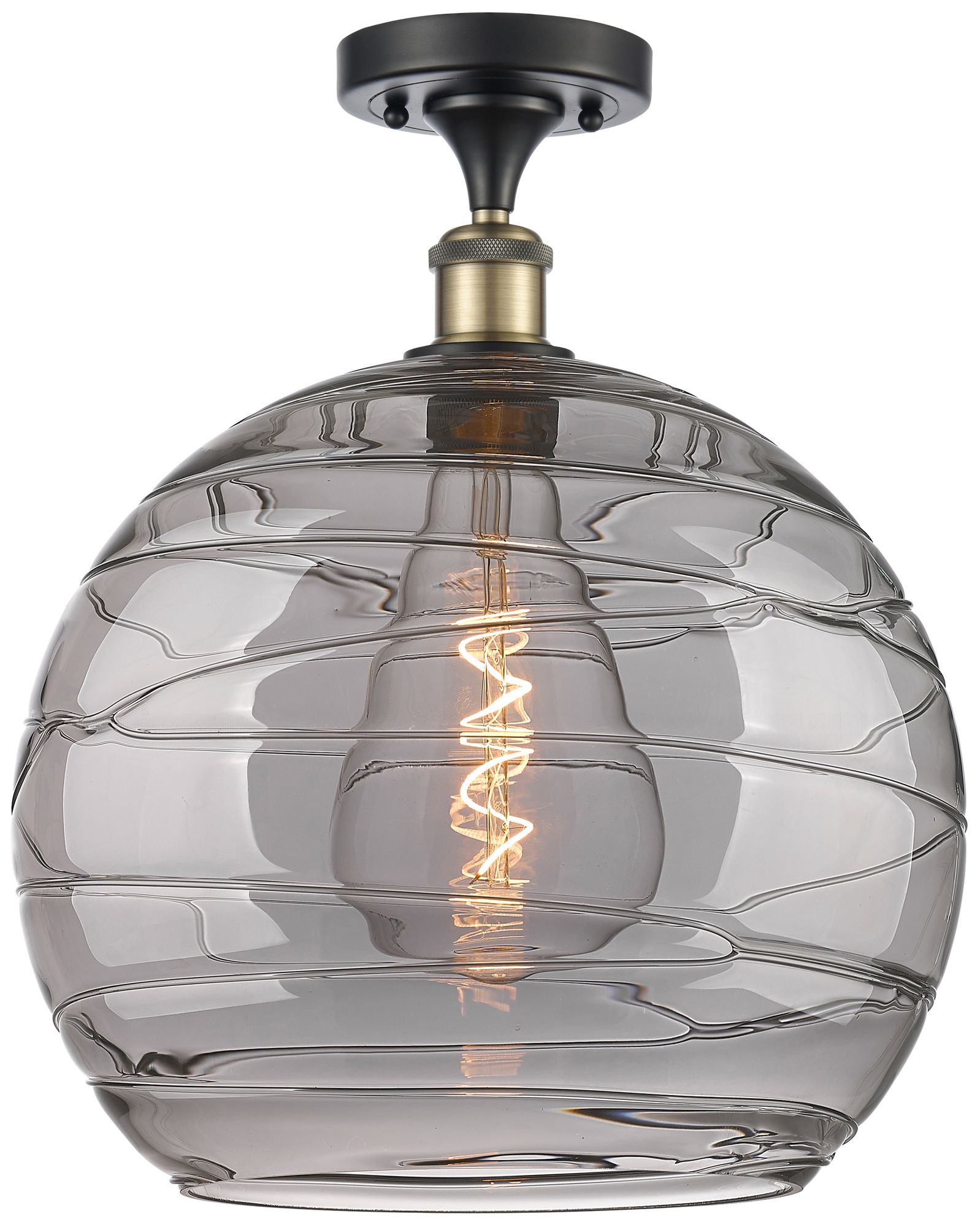 Ballston Athens 13.75"W Black Antique Brass Semi-Flush w/ Smoke Swirl
