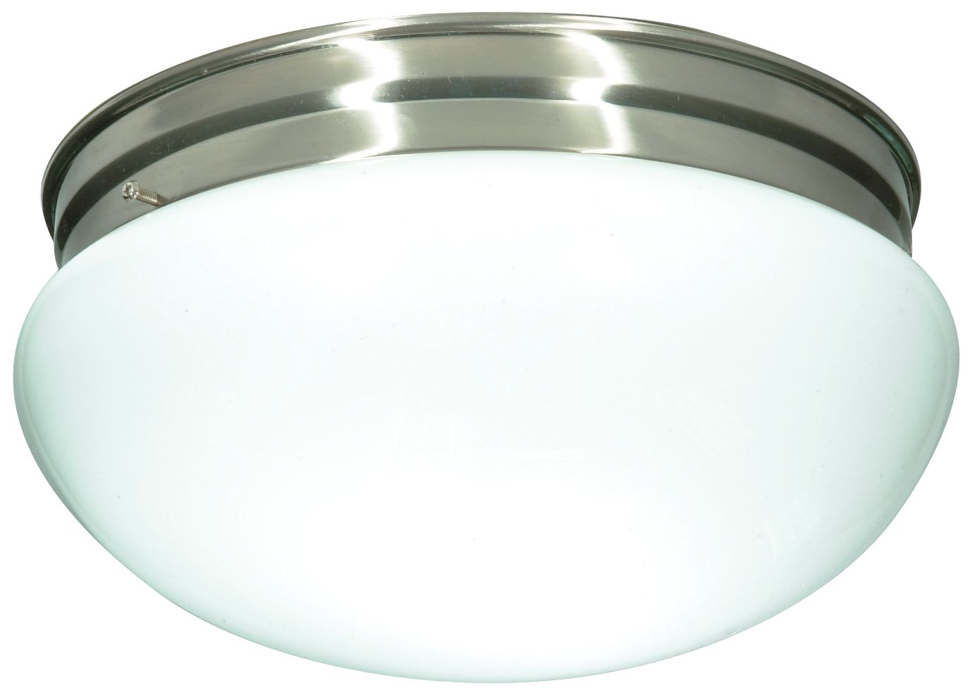 2 Light - 12" - Flush Mount - Large White Mushroom - Brushed Nickel Fi