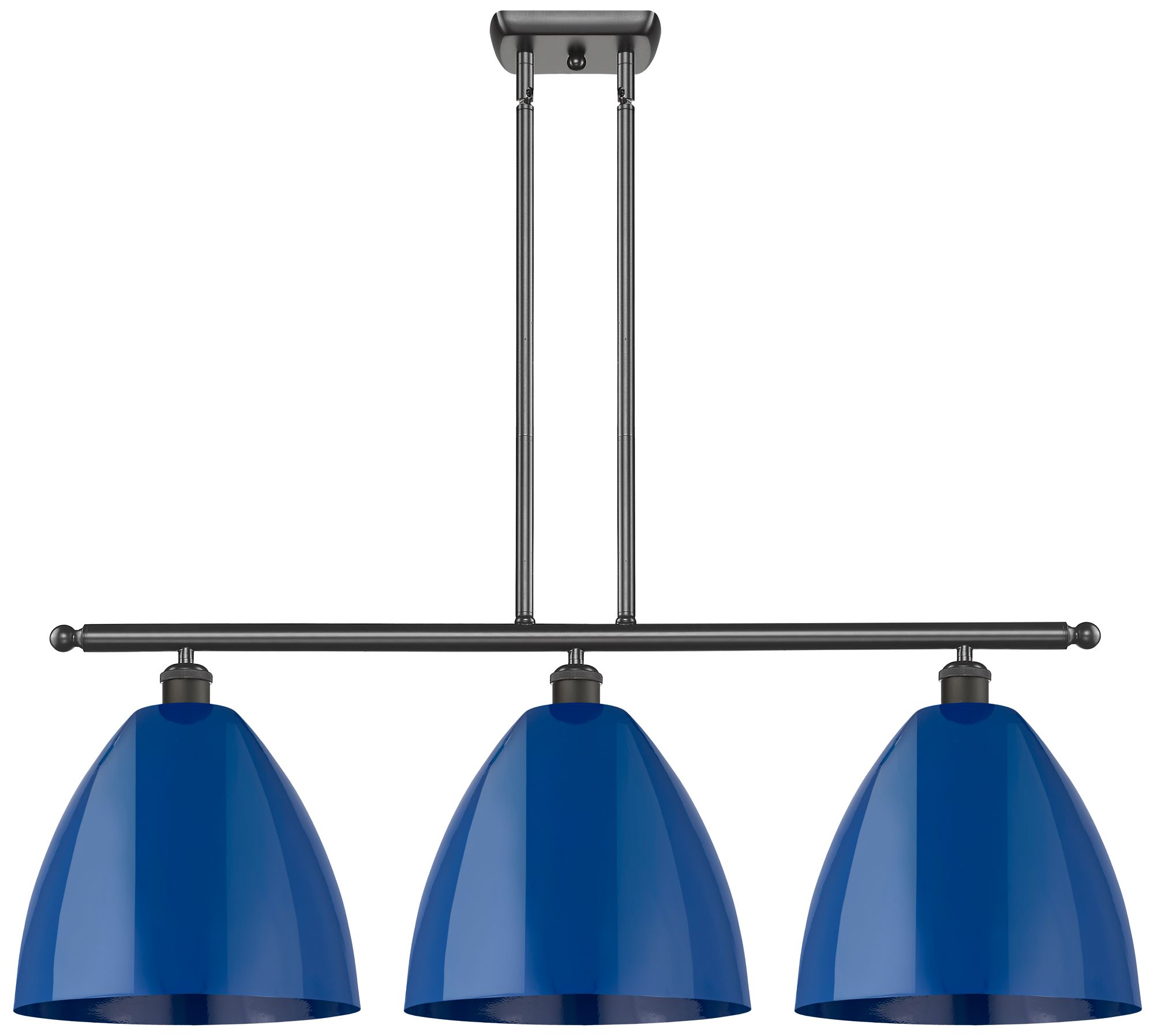 Plymouth Dome 38.5"W 3 Light Bronze Stem Hung Island Light w/ Blue Sha