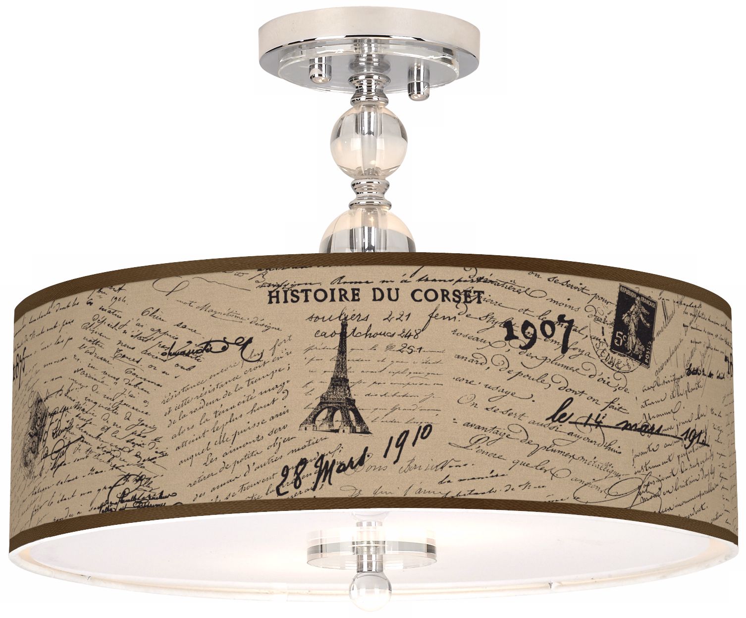 Letters to Paris Linen 16" Wide Semi-Flush Ceiling Light