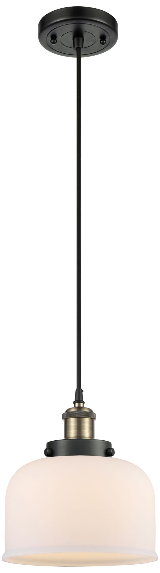 Ballston Urban Bell 8" Mini Pendant - Black Antique Brass - Matte Whit