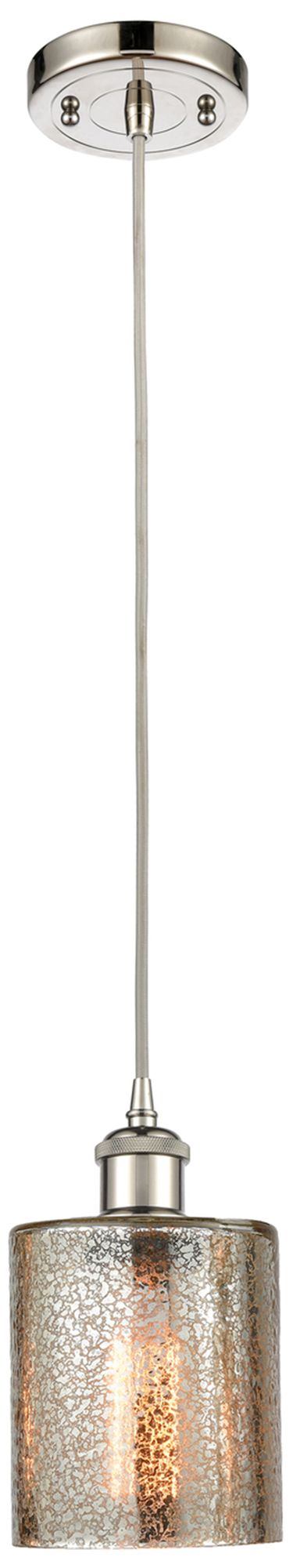 Ballston Cobbleskill 5" Polished Nickel Corded Pendant w/ Mercury Shad