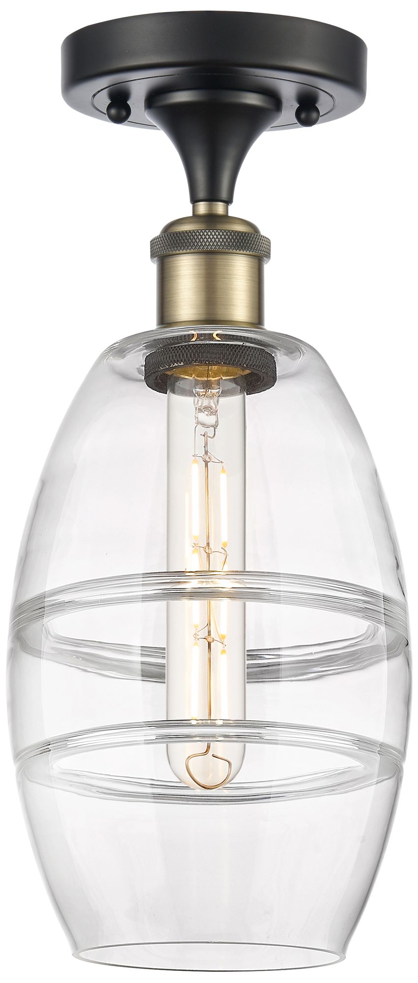 Ballston Vaz 5.88" Wide Black Antique Brass Semi-Flush Mount w/ Clear