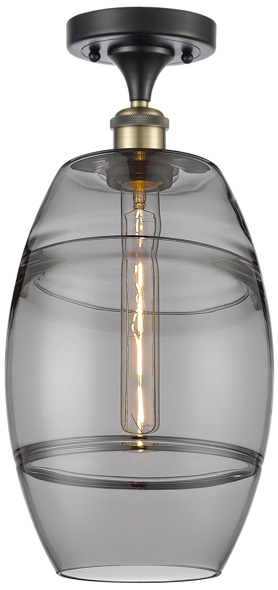 Ballston Vaz 8"W Black Antique Brass Semi-Flush Mount w/ Light Smoke S