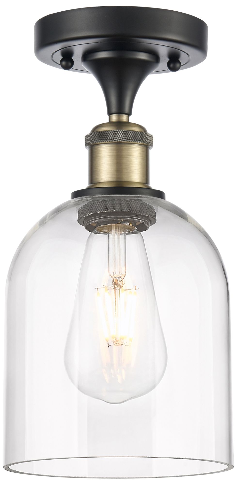 Ballston Bella 5.5"W Black Brass Semi-Flush w/ Clear Deco Swirl Shade