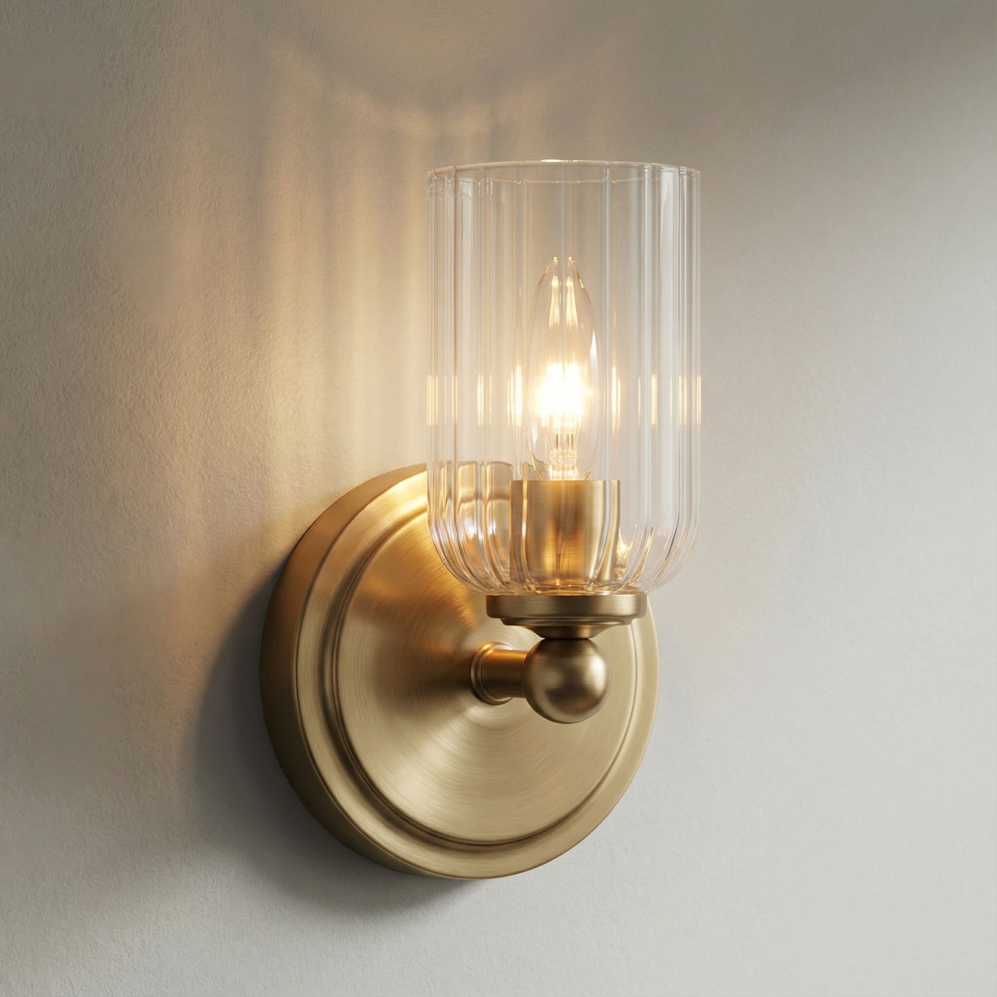 Possini Euro Oliver 9 1/4"H Satin Brass and Fluted Glass Wall Sconce