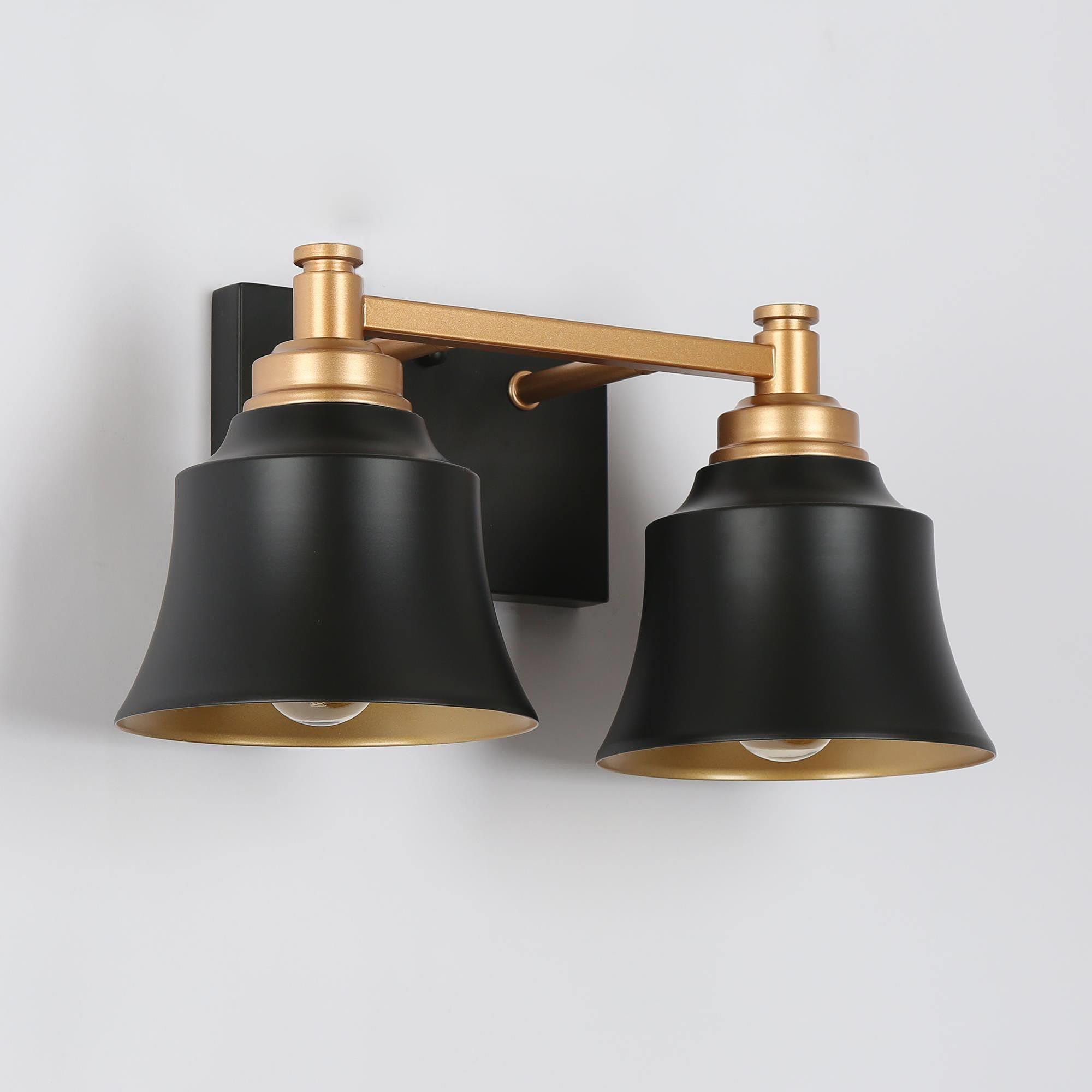 Indus 2-Light 14" Wide Black and Gold Bath Light