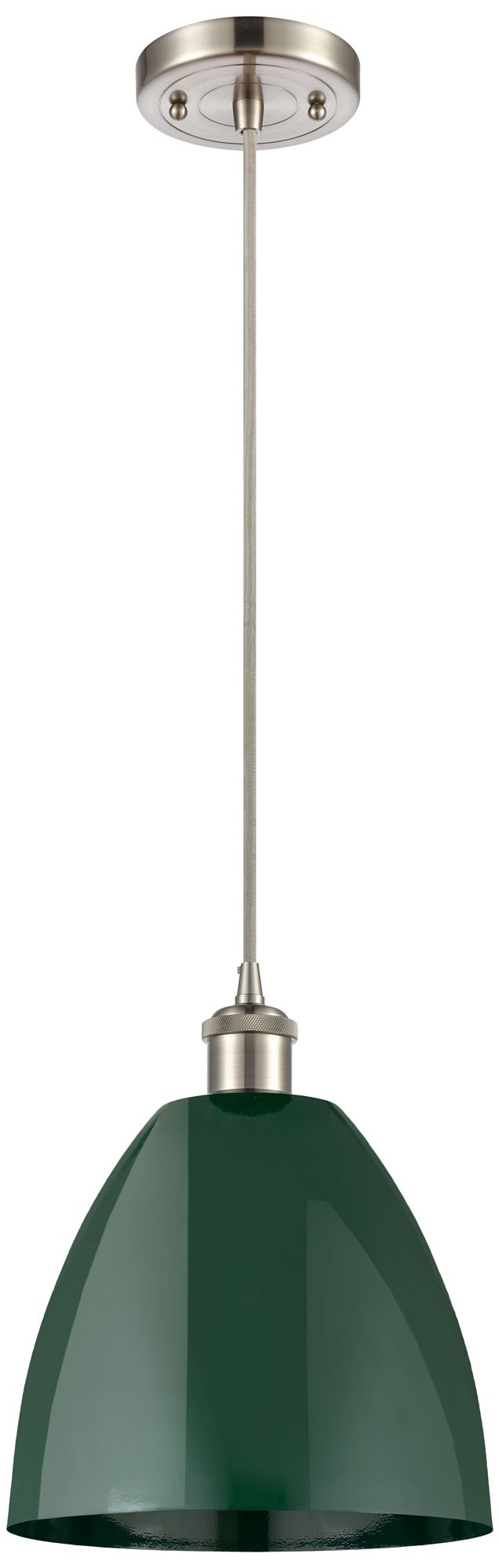 Ballston Plymouth Dome 9"W Brushed Nickel Corded Mini Pendant Green Sh