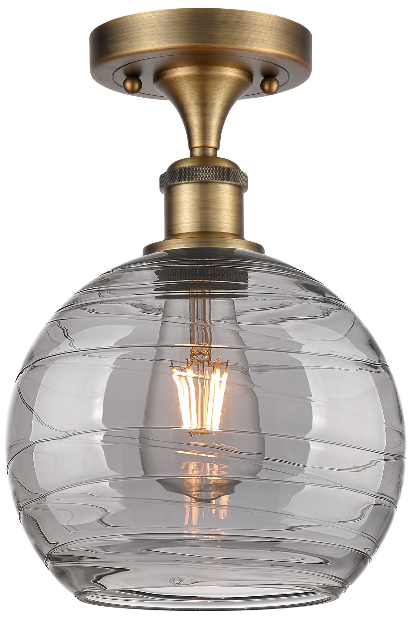 Ballston Athens 8"W Brushed Brass Semi-Flush Mount w/ Smoke Swirl Shad