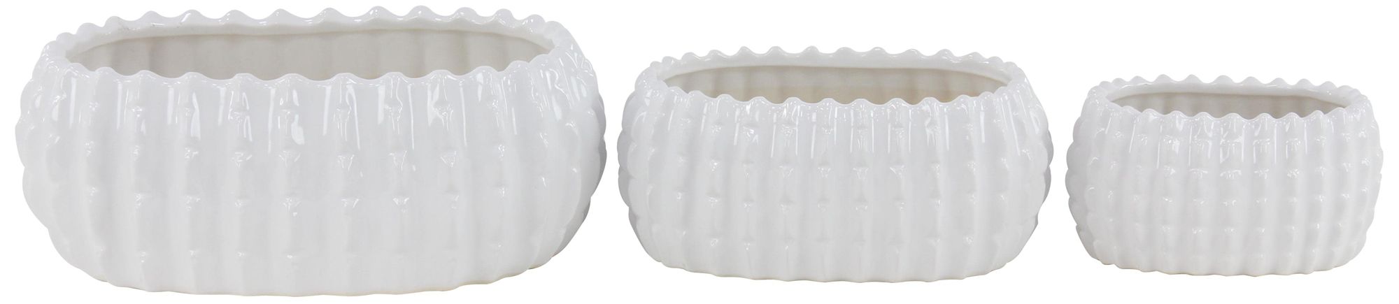 White Ceramic Traditional Planter, S/3 17", 13", 8"W