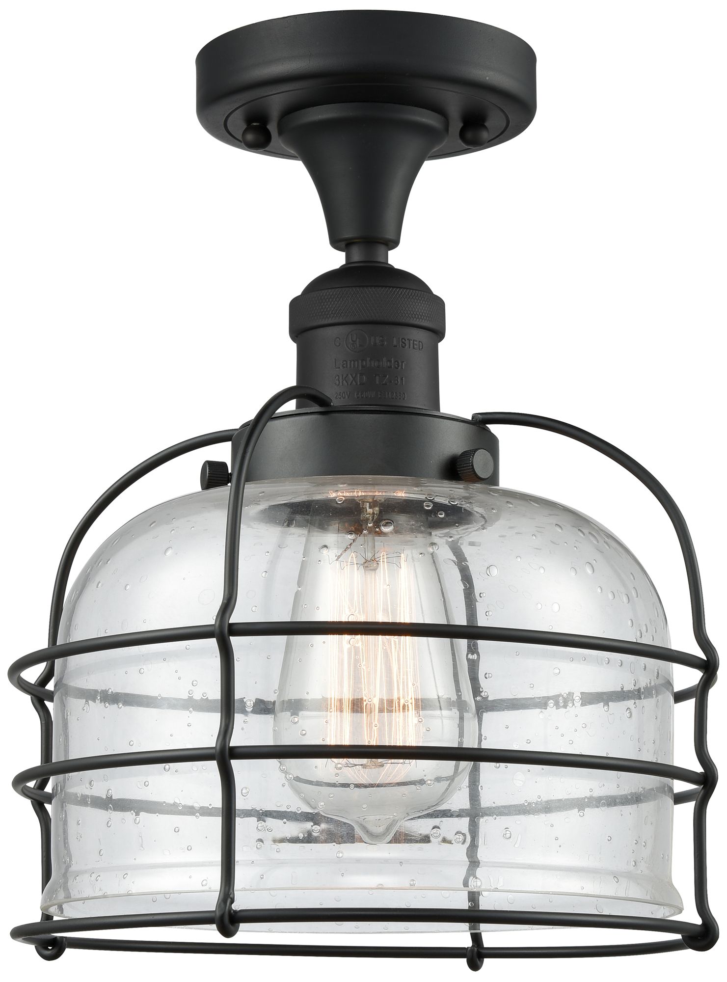 Franklin Bell Cage 8" Wide Matte Black Semi Flush Mount w/ Seedy Shade