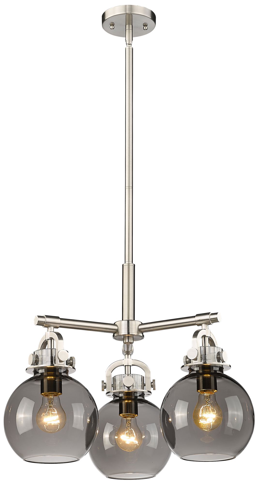 Newton Sphere 20.4"W 3 Light Stem Hung Satin Nickel Pendant w/ Smoke S