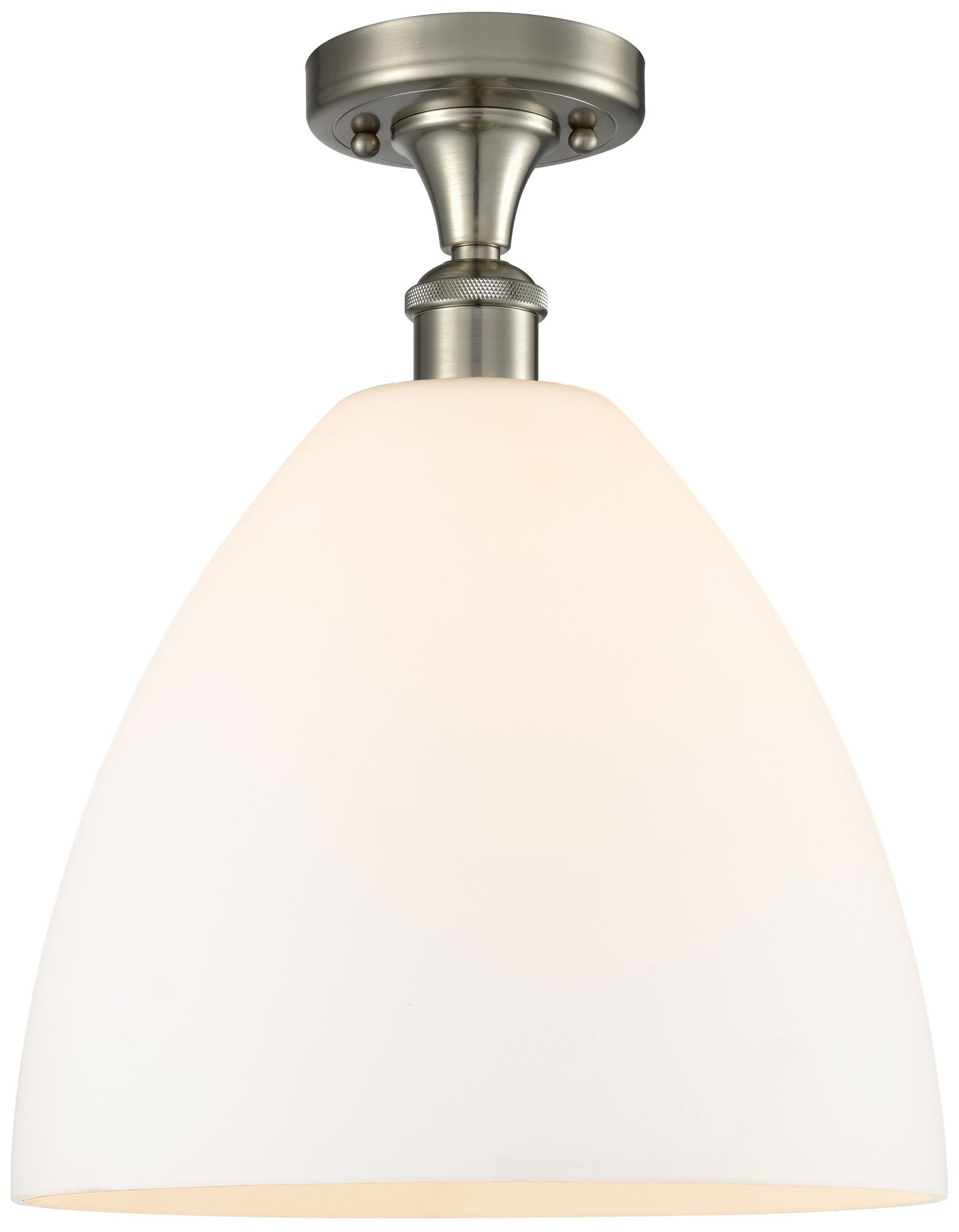 Bristol Glass 12" Semi-Flush Mount - Brushed Satin Nickel - Matte Whit
