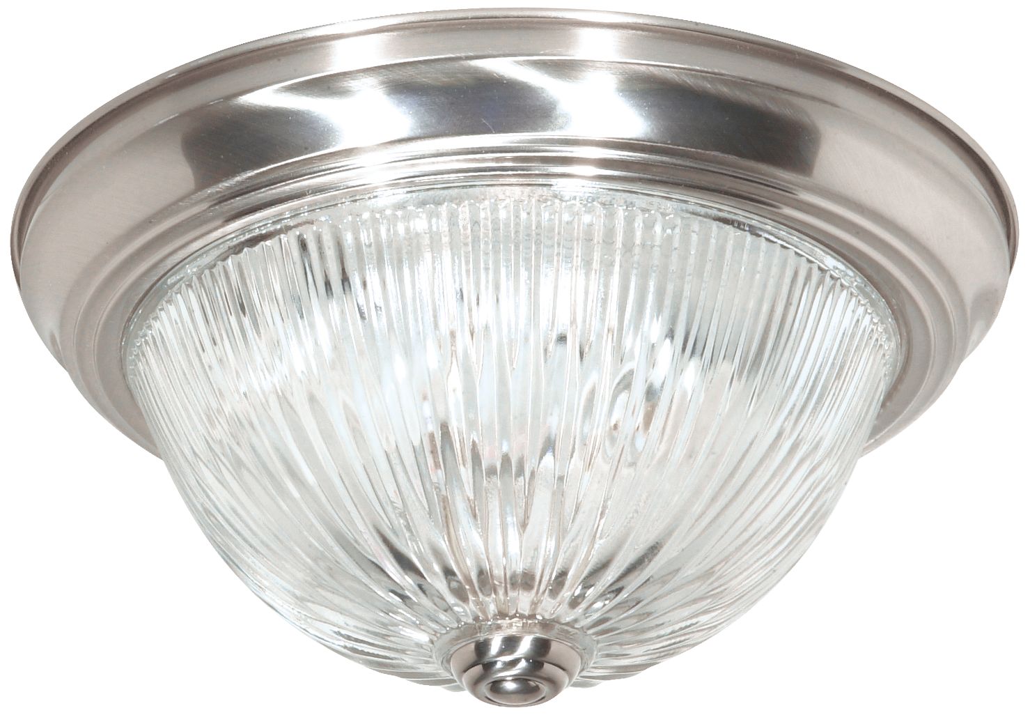 2 Light 13.25 " Wide Flush Mount Clear Ribbed Glass in Brushed Nickel