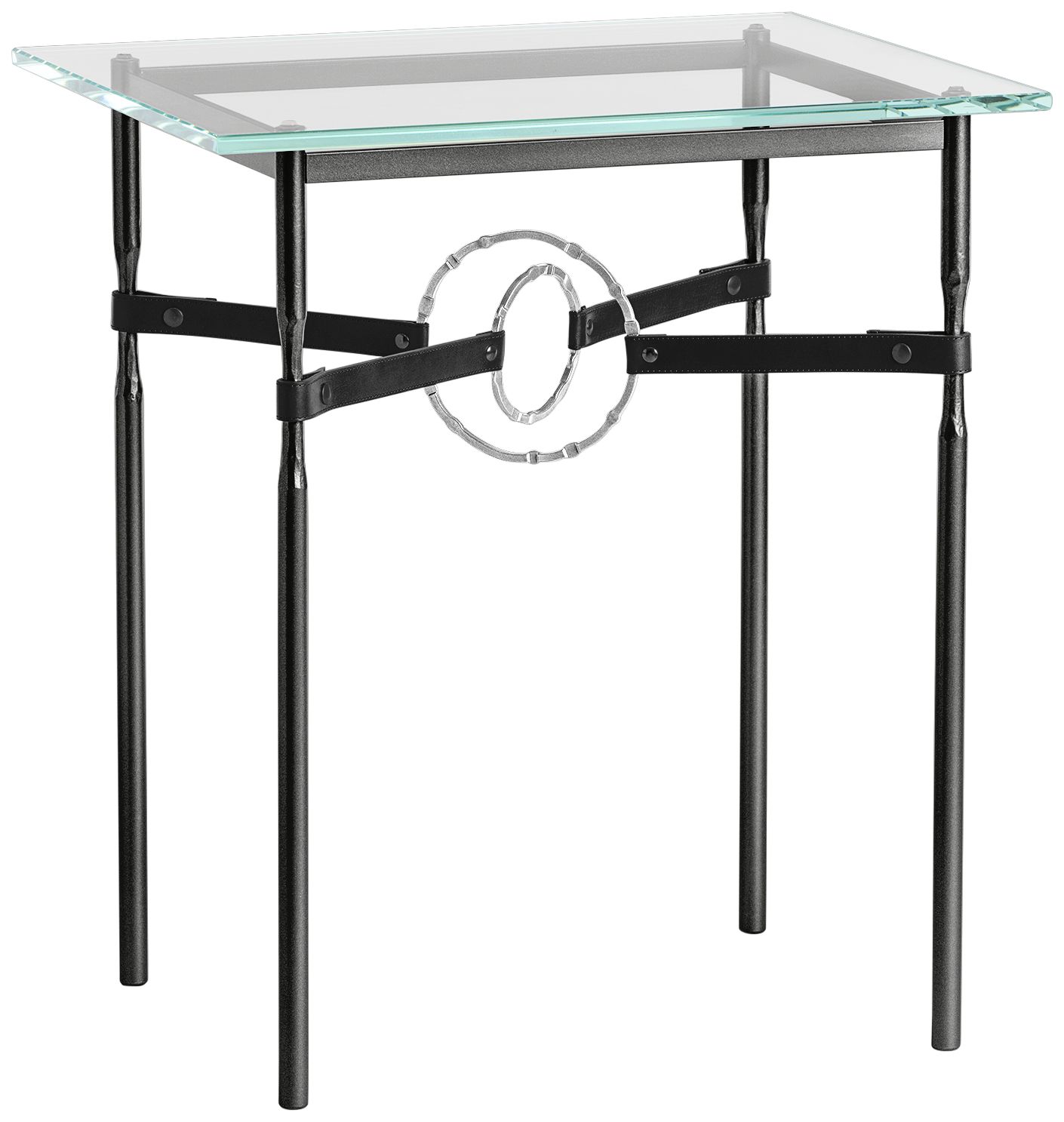 Equus 22" Wide Black Side Table w/ Sterling Ring Black Strap