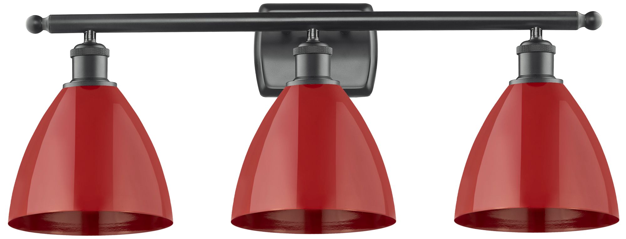 Plymouth Dome 27.5" Wide 3 Light Matte Black Bath Vanity Light w/ Red